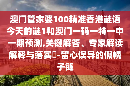 澳門管家婆100精準香港謎語今天的謎1和澳門一碼一特一中一期預測,關(guān)鍵解答、專家解讀解釋與落實?-留心誤導的假幌子鏈