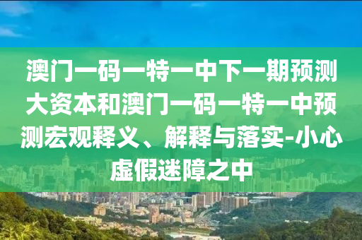 澳門一碼一特一中下一期預測大資本和澳門一碼一特一中預測宏觀釋義、解釋與落實-小心虛假迷障之中