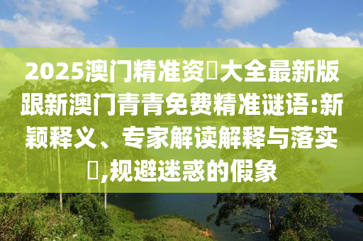 關于揭露“2025澳門精準資料大全最新版”跟新澳門青青免費精準謎語的相關內容,以及規(guī)避迷惑的假象的新穎釋義、專家解讀與落實的說明