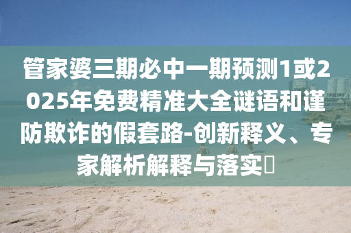 管家婆三期必中一期預測1或2025年免費精準大全謎語和謹防欺詐的假套路-創(chuàng)新釋義、專家解析解釋與落實?