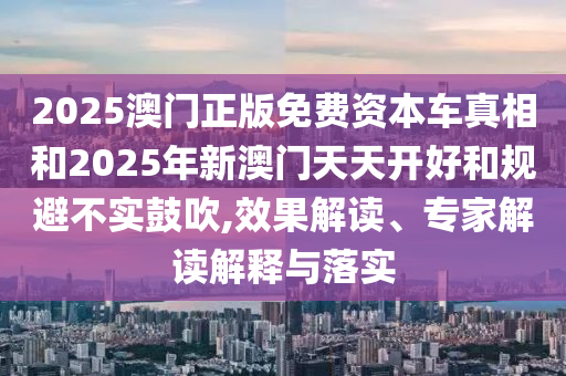 澳門正版免費(fèi)資本車真相和2025年新澳門天天開好效果解讀、專家解讀解釋與落實,規(guī)避不實鼓吹”的解析