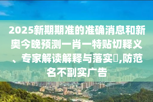 2025新期期準(zhǔn)的準(zhǔn)確消息和新奧今晚預(yù)測一肖一特貼切釋義、專家解讀解釋與落實?,防范名不副實廣告