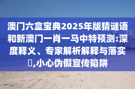 澳門六盒寶典2025年版猜謎語和新澳門一肖一馬中特預(yù)測:深度釋義、專家解析解釋與落實(shí)?,小心偽假宣傳陷阱