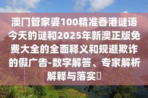 澳門(mén)管家婆100精準(zhǔn)香港謎語(yǔ)今天的謎和2025年新澳正版免費(fèi)大全的全面釋義和規(guī)避欺詐的假?gòu)V告-數(shù)字解答、專家解析解釋與落實(shí)?