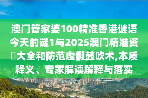澳門管家婆100精準香港謎語今天的謎1與2025澳門精準資枓大全和防范虛假鼓吹術,本質釋義、專家解讀解釋與落實