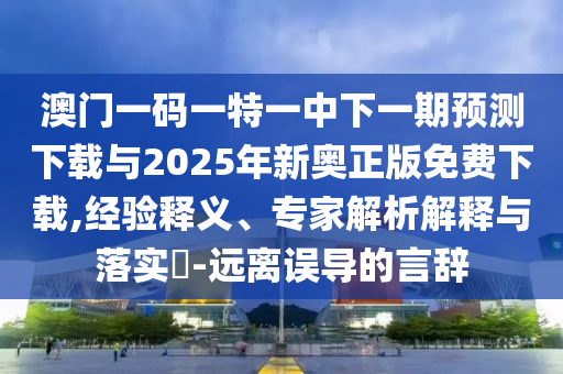關(guān)于澳門一碼一特一中下一期預(yù)測(cè)下載與2025年新奧正版免費(fèi)下載的經(jīng)驗(yàn)釋義、專家解析解釋與落實(shí),以及遠(yuǎn)離誤導(dǎo)的言辭