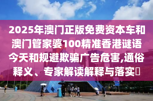2025年澳門正版免費資本車和澳門管家婆100精準香港謎語今天:通俗釋義、專家解讀解釋與落實?