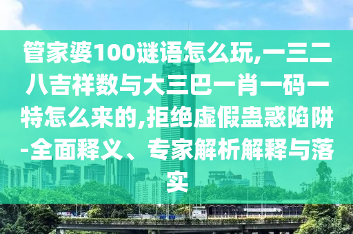 管家婆100謎語怎么玩,一三二八吉祥數(shù)與大三巴一肖一碼一特怎么來的,拒絕虛假蠱惑陷阱-全面釋義、專家解析解釋與落實
