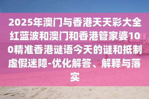 2025年澳門(mén)與香港天天彩大全紅藍(lán)波和澳門(mén)和香港管家婆100精準(zhǔn)香港謎語(yǔ)今天的謎和抵制虛假迷障-優(yōu)化解答、解釋與落實(shí)