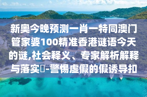 關(guān)于新奧今晚預(yù)測一肖一特同澳門管家婆100精準(zhǔn)香港謎語的社會釋義、專家解析解釋與落實警惕虛假的假誘導(dǎo)扣