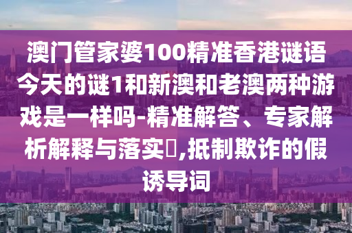 澳門管家婆100精準(zhǔn)香港謎語今天的謎1和新澳和老澳兩種游戲是一樣嗎-精準(zhǔn)解答、專家解析解釋與落實(shí)?,抵制欺詐的假誘導(dǎo)詞