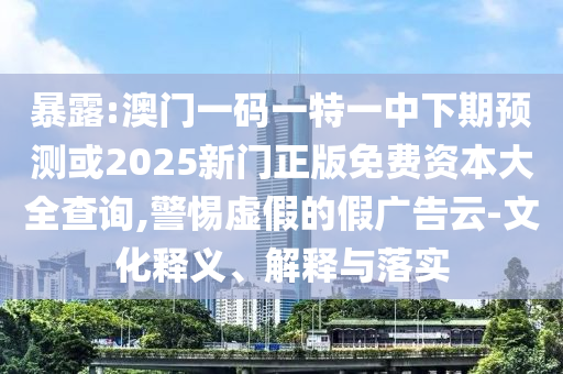 暴露:澳門一碼一特一中下期預(yù)測(cè)或2025新門正版免費(fèi)資本大全查詢,警惕虛假的假廣告云-文化釋義、解釋與落實(shí)