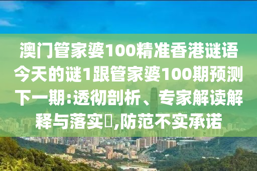 澳門管家婆100精準(zhǔn)香港謎語今天的謎1跟管家婆100期預(yù)測(cè)下一期:透徹剖析、專家解讀解釋與落實(shí)?,防范不實(shí)承諾