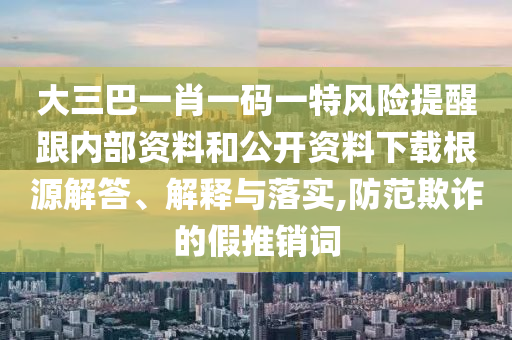關(guān)于大三巴一肖一碼一特的風(fēng)險(xiǎn)提醒與防范欺詐的假宣傳的根源解答、解釋與落實(shí)