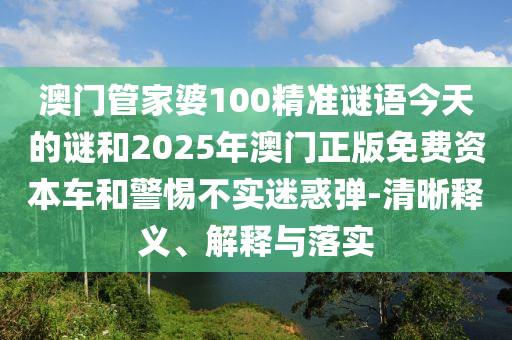 澳門管家婆100精準(zhǔn)謎語今天的謎和2025年澳門正版免費(fèi)資本車和警惕不實(shí)迷惑彈-清晰釋義、解釋與落實(shí)