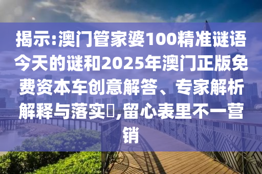 揭示:澳門管家婆100精準謎語今天的謎和2025年澳門正版免費資本車創(chuàng)意解答、專家解析解釋與落實?,留心表里不一營銷