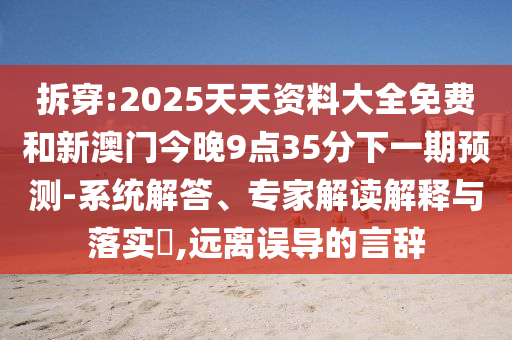 關(guān)于拆穿“2025天天資料大全免費(fèi)”和“新澳門今晚9點(diǎn)35分下一期預(yù)測”,以及警惕誤導(dǎo)言辭的系統(tǒng)解答、專家解讀解釋與落實(shí)的文章內(nèi)容如下: