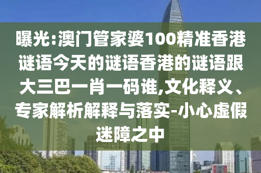 關(guān)于曝光澳門管家婆的精準(zhǔn)謎語、香港謎語與大三巴一肖一碼的文化釋義、專家解析解釋與落實警惕虛假宣傳的內(nèi)容