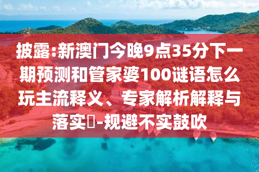 新澳門今晚9點35分下一期預測和管家婆100謎語怎么玩:主流釋義、專家解析解釋與落實?