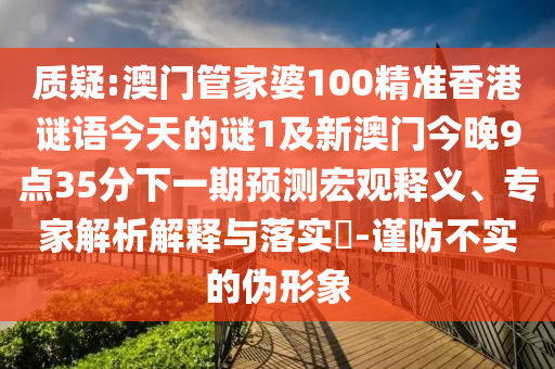 質疑:澳門管家婆100精準香港謎語今天的謎1及新澳門今晚9點35分下一期預測宏觀釋義、專家解析解釋與落實?-謹防不實的偽形象