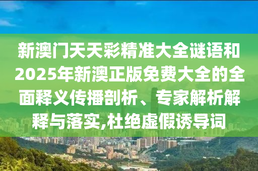新澳門天天彩精準大全謎語和2025年新澳正版免費大全的全面釋義傳播剖析、專家解析解釋與落實,杜絕虛假誘導詞
