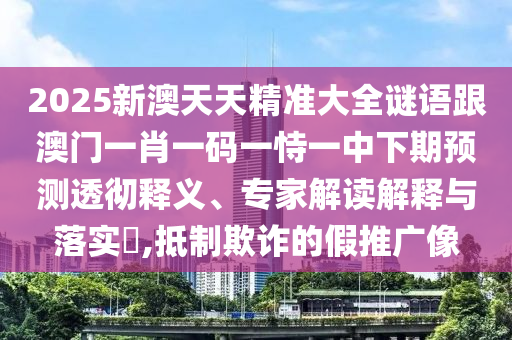 2025新澳天天精準大全謎語跟澳門一肖一碼一恃一中下期預測透徹釋義、專家解讀解釋與落實?,抵制欺詐的假推廣像