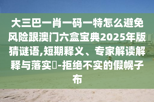 大三巴一肖一碼一特怎么避免風險跟澳門六盒寶典2025年版猜謎語,短期釋義、專家解讀解釋與落實?-拒絕不實的假幌子布