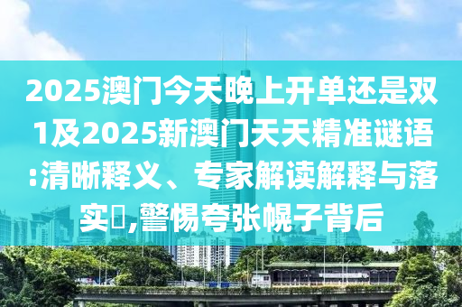 2025澳門今天晚上開單還是雙1及2025新澳門天天精準謎語:清晰釋義、專家解讀解釋與落實?,警惕夸張幌子背后