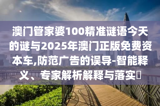 澳門(mén)管家婆100精準(zhǔn)謎語(yǔ)今天的謎與2025年澳門(mén)正版免費(fèi)資本車,防范廣告的誤導(dǎo)-智能釋義、專家解析解釋與落實(shí)?
