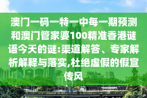 澳門一碼一特一中每一期預(yù)測和澳門管家婆100精準(zhǔn)香港謎語今天的謎:渠道解答、專家解析解釋與落實(shí),杜絕虛假的假宣傳風(fēng)