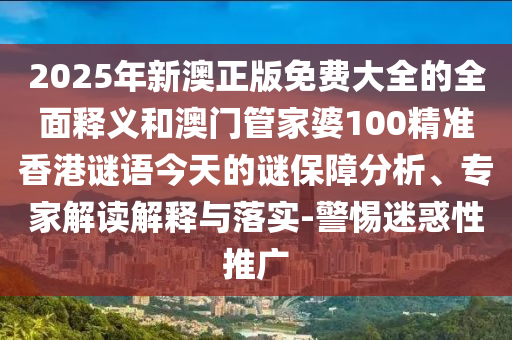 關(guān)于澳門(mén)管家婆2025年新澳正版免費(fèi)大全的全面釋義和澳門(mén)管家婆精準(zhǔn)香港謎語(yǔ)今天的謎,警惕迷惑性推廣的分析與解讀
