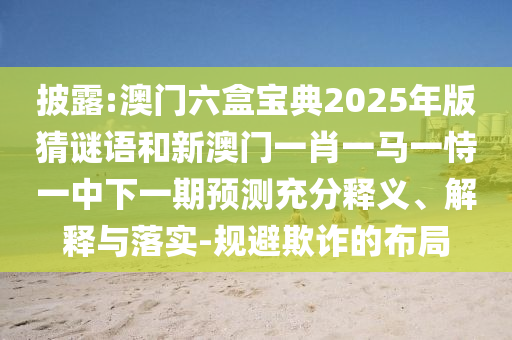 披露:澳門(mén)六盒寶典2025年版猜謎語(yǔ)和新澳門(mén)一肖一馬一恃一中下一期預(yù)測(cè)充分釋義、解釋與落實(shí)-規(guī)避欺詐的布局
