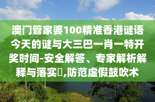 澳門管家婆100精準香港謎語今天的謎與大三巴一肖一特開獎時間:安全解答、專家解析解釋與落實?