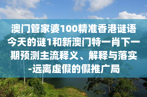 澳門管家婆100精準(zhǔn)香港謎語今天的謎1和新澳門特一肖下一期預(yù)測——全面釋義、專家解讀與落實,警惕虛假宣傳及假推廣局的主流釋義、解釋與落實