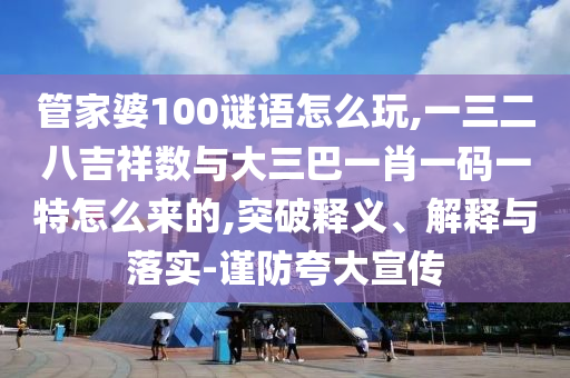 管家婆100謎語怎么玩,一三二八吉祥數(shù)與大三巴一肖一碼一特怎么來的,突破釋義、解釋與落實(shí)-謹(jǐn)防夸大宣傳
