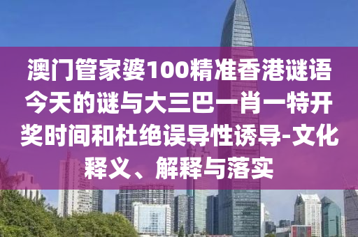 關(guān)于澳門管家婆100精準香港謎語、大三巴一肖一特開獎時間等關(guān)鍵詞的文化釋義、解釋與落實,以及警惕虛假宣傳和杜絕誤導性誘導的探討