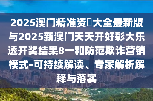 2025澳門精準資枓大全最新版與2025新澳門天天開好彩大樂透開獎結(jié)果8一和防范欺詐營銷模式-可持續(xù)解讀、專家解析解釋與落實