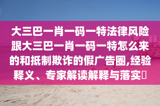 關(guān)于關(guān)鍵詞“大三巴一肖一碼一特”的法律風(fēng)險(xiǎn)及經(jīng)驗(yàn)釋義,專家解讀與落實(shí),抵制虛假宣傳與欺詐廣告的研究分析