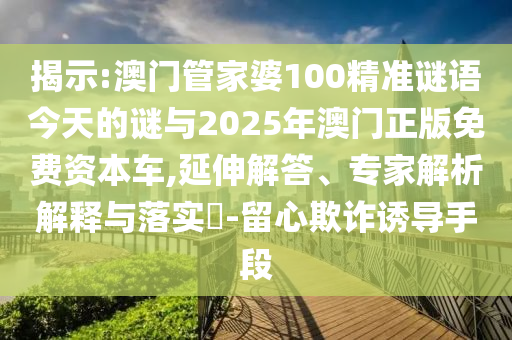 揭示:澳門管家婆100精準謎語今天的謎與2025年澳門正版免費資本車,延伸解答、專家解析解釋與落實?-留心欺詐誘導手段