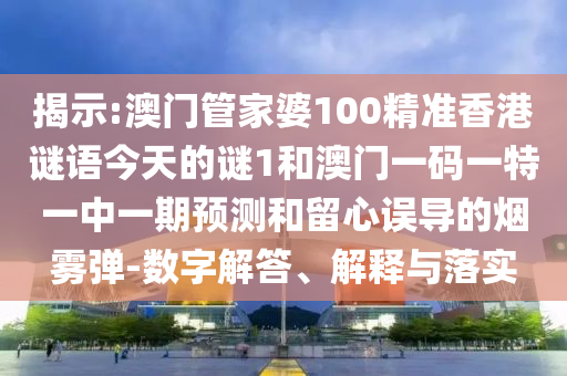 揭示:澳門管家婆100精準香港謎語今天的謎1和澳門一碼一特一中一期預測和留心誤導的煙霧彈-數(shù)字解答、解釋與落實